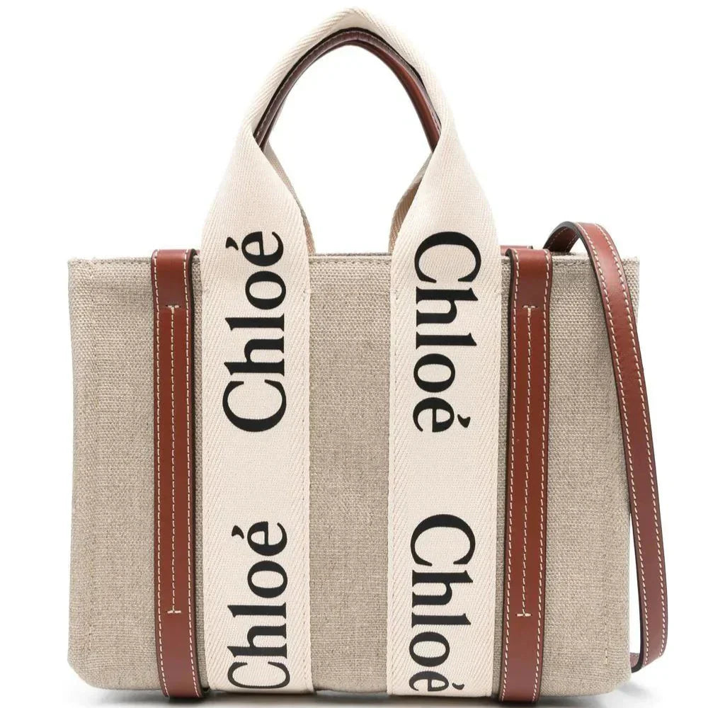 Indulge in the epitome of chic with this exquisite small woody tote bag from CHLOÉ. Crafted from 100% linen and adorned with 100% calf leather details, this luxurious bag exudes sophistication and elegance. The perfect accessory for the fashion-forward individual who appreciates the finer things in life, this tote bag is designed to elevate any outfit with its timeless style and impeccable craftsmanship.